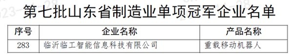 完美电竞•(中国)智科荣获“山东省制造业单项冠军企业”称号